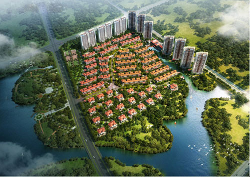 鳳鳴湖高管公寓項(xiàng)目,西、南兩面面臨鳳鳴湖,水資源豐富,向北遠(yuǎn)眺牛頭山,山清水秀,風(fēng)景宜人。項(xiàng)目總規(guī)劃用地為133400平方米,約200畝,容積率為1.2,用地性質(zhì)為居住及配套,規(guī)劃為高層花園洋房等,力爭80%以上的建筑物可以觀湖,充分挖掘臨湖的居住價(jià)值。