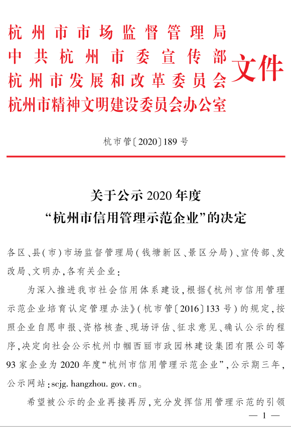 新桃源榮膺“杭州市信用管理示范企業(yè)”稱號